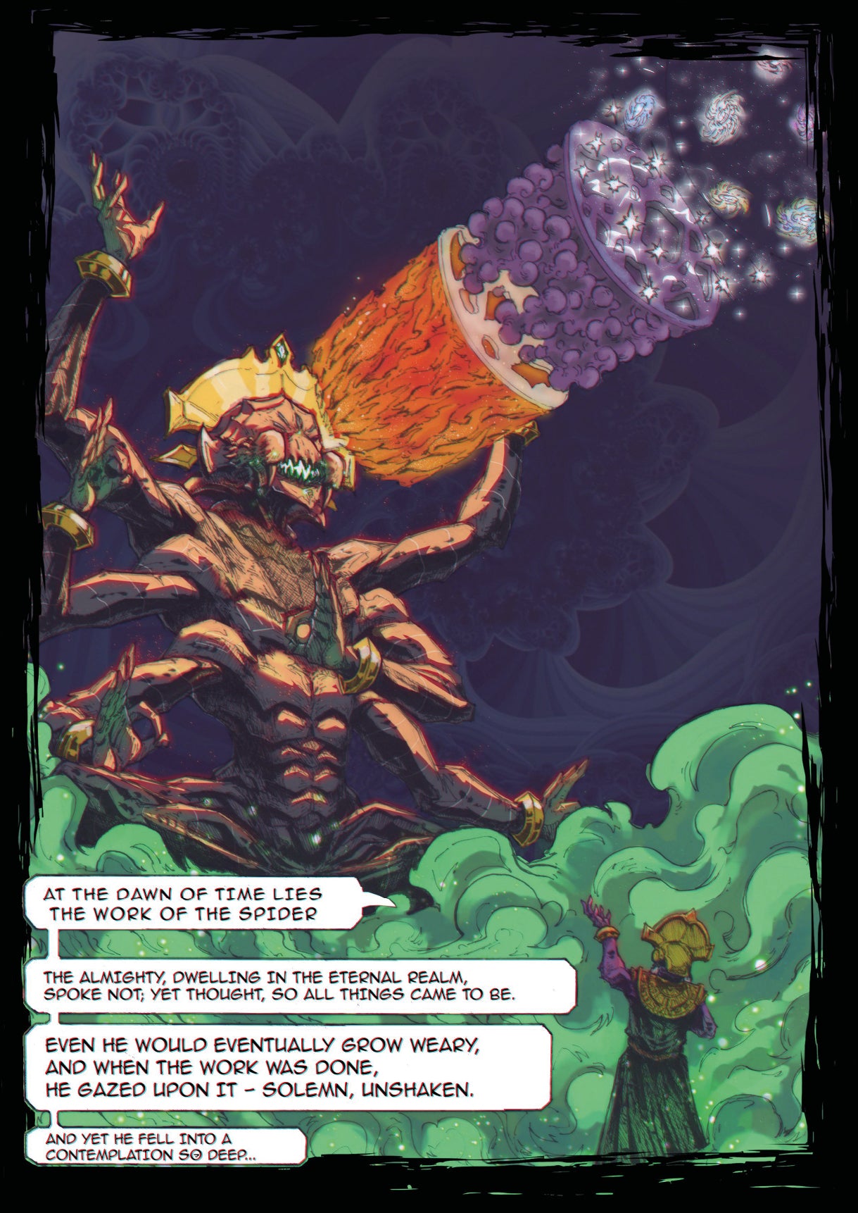 The first volume, ALM Tales #1: To Be Pure, unfolds on the planet Heiki in the year 2168 G.Y. It introduces the Eetians, a species guided by an ancient and absolute belief in their creator deity, M’nomoidon, the Blind Spider. According to their sacred scriptures, reality itself was fractured into countless false truths, and only through “Purification” can the broken mirror of existence be restored. What the Eetians call divine duty becomes a justification for conquest, occupation, and destruction, while a small group of rebels attempts a final act of resistance against overwhelming power.
